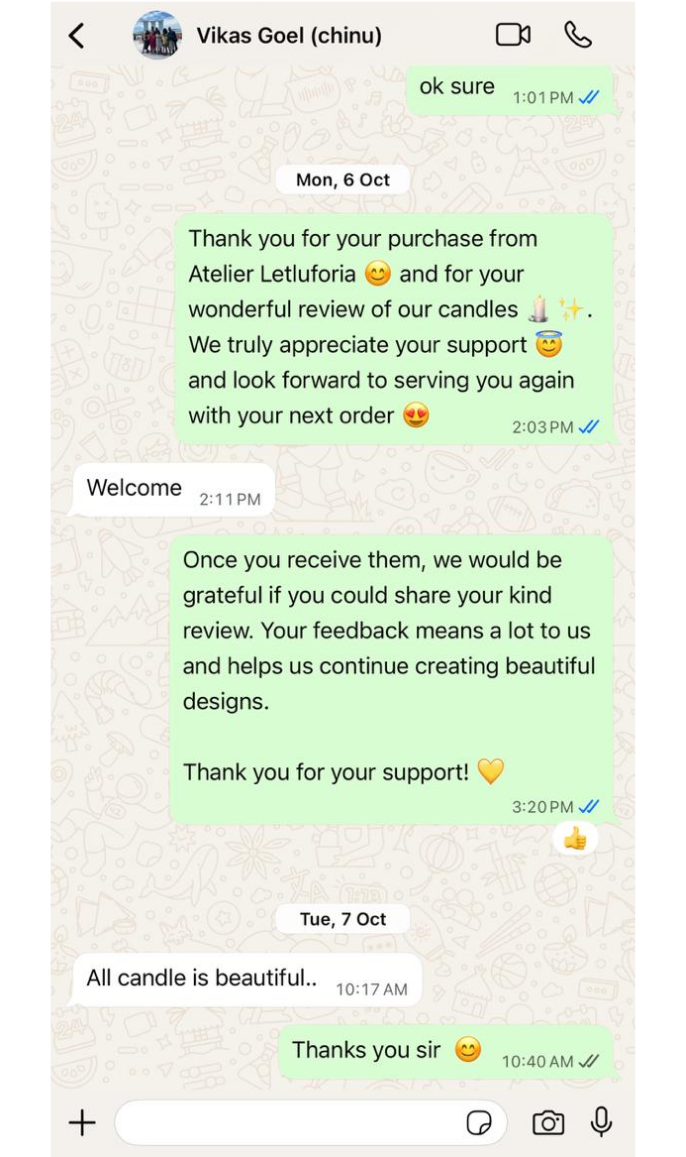 At Atelier Letluforia, our mission is to create thoughtfully designed scented candles and luxury hampers that elevate everyday moments. Through refined fragrances, hand-poured craftsmanship, and conscious presentation, we aim to bring warmth, calm, and elegance into every space and every gift.